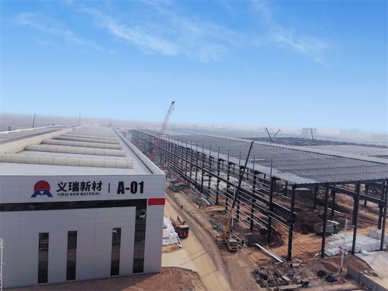 施工車輛穿梭奔忙,一跨跨車間正在拔節(jié)生長……義瑞新材的項目建設正在加速推進。